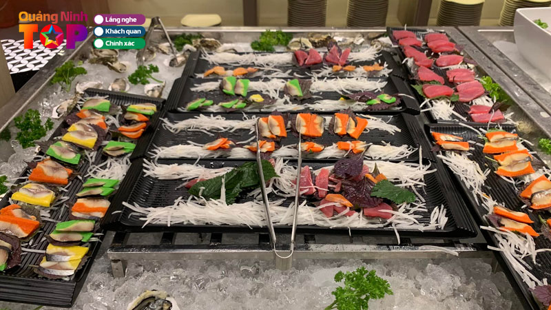 - Menu phong phú gồm hải sản, món nướng, sushi, lẩu và nhiều món tráng miệng đa dạng.